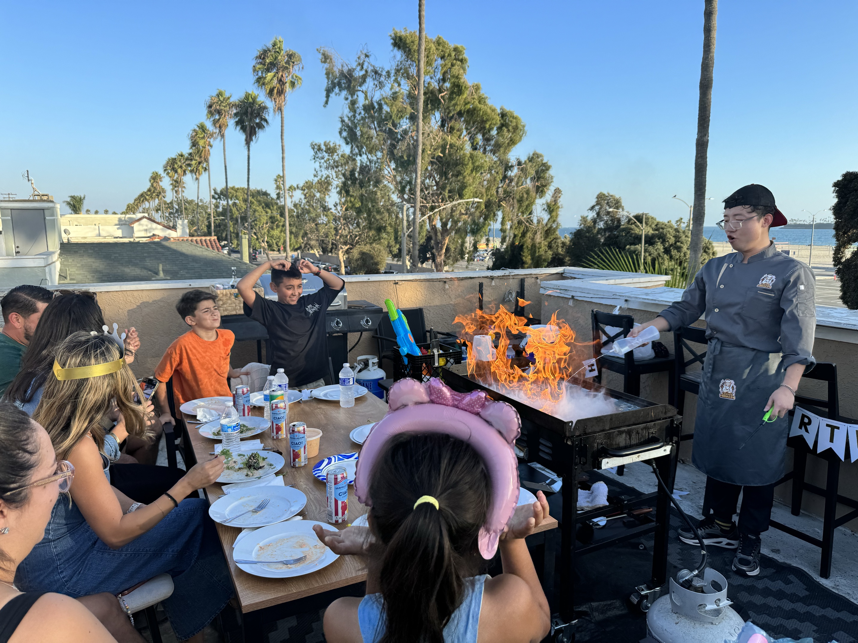 Family gatherings anchor our schedule, particularly during holiday seasons and summer when extended family visits from Latin America, Europe, or northern U.S. cities. These events often involve 25-40 people spanning multiple generations. The beauty of our family gathering service is that kids are genuinely entertained by the knife skills performance and fire elements, while adults appreciate the premium quality food and the fact that grandparents don't have to navigate restaurant parking or crowded dining rooms.