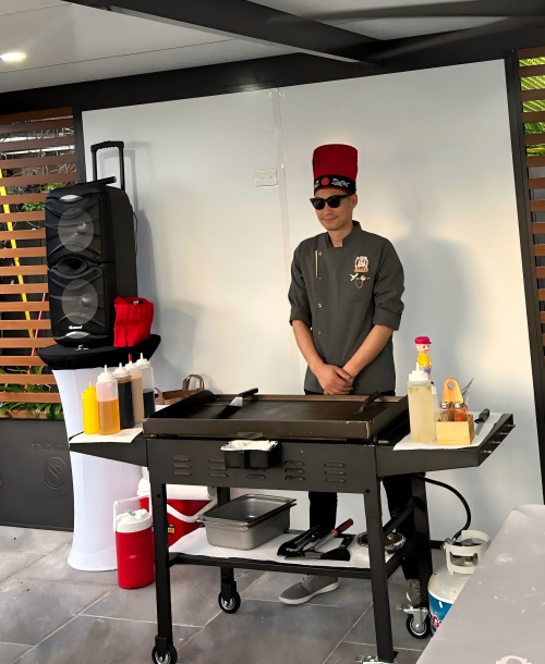 Our chef arrives 30-45 minutes before your event start time with everything needed: professional-grade teppanyaki grill, propane, cooking tools, fresh ingredients, and the expertise to transform your space into an interactive dining theater. While your chef sets up, you're finishing hosting prep—arranging seating, setting out drinks, greeting early arrivals. Zero stress about the main event because that's handled.