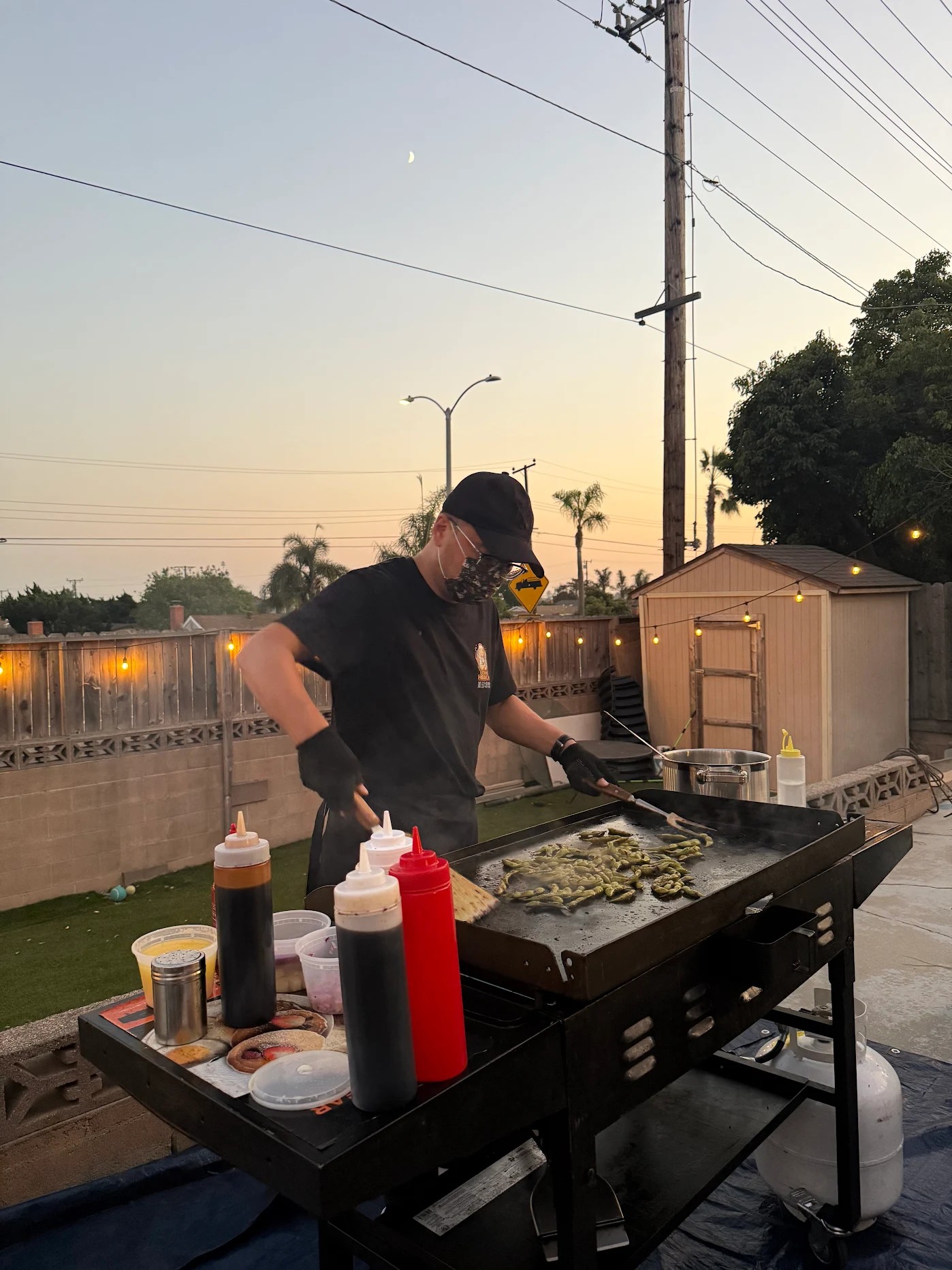 What's the minimum space requirement?We need approximately 10x10 feet for grill setup and chef working area, plus space for guests to gather around. Fresno homes of virtually any size work—we've performed in Tower District apartments and sprawling Clovis estates. Indoor or outdoor both function well. The key is guest circulation, not total square footage.